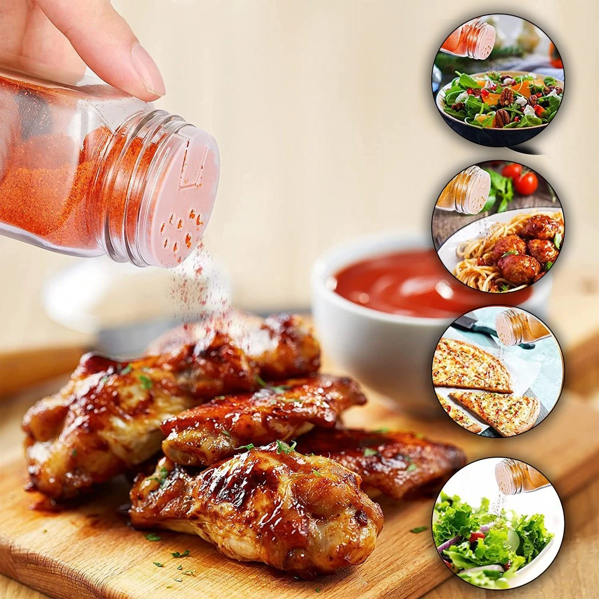 Met de MK kruidenpotjesset organiseer je je kasten, bespaar je veel ruimte en geef je je keuken een nieuwe look. Deze glazen kruidenpotjes zijn perfect voor alle soorten kruiden en specerijen, grof of fijn. Een musthave voor iedere keuken! Inclusief zwarte, witte en doorzichtige stickers! Bevat de namen van 104 van de meest voorkomende kruiden en specerijen. Gebruik de checklist om ervoor te zorgen dat je al je favoriete kruiden bij de hand hebt! Vind je het leuk om zelf stickers te schrijven? Onze kit bevat ook blanco stickers zodat je op jezelf kunt schrijven met krijt of pen. Veeg na gebruik eenvoudig de naam op de zwarte sticker weg en vul het potje met nieuwe kruiden. Witte blanco stickers zijn niet uitwisbaar. Lege witte sticker; vul het etiket in met pen Blanco zwarte stickers; gebruik de meegeleverde krijtstiften om labels in te vullen Bonus: u krijgt ook verlopen labels voor producten die deze mogelijk nodig hebben. Bewaar Kruiden en Specerijen Probleemloos Onze kruidenpotjes zijn gemaakt van hoogwaardig glas en zijn volledig lood- en BPA-vrij. Bovendien is de deksel vocht- en stofbestendig, waardoor je lang kunt genieten van je favoriete kruiden. Makkelijk schoon te maken Onze glazen kruidenpotjes zijn volledig vaatwasmachinebestendig. Het enige wat je zelf moet schoonmaken is de aluminium kap (deze is niet vaatwasser bestendig) 3 strooidekels Verwissel de deksels razendsnel met drie verschillende soorten strooideksels. Inclusief roestvrijstalen trechter Met een slimme trechter vul je je kruidenpotjes makkelijk bij zonder te knoeien. Met reinigingsborstel Het schoonmaken van kruidenpotjes kan heel moeilijk zijn zonder de juiste borstels. Hoe kunnen we dit probleem oplossen? Wordt geleverd met een schoonmaakborsteltje. Inhoud doos: 104x Bedrukte transparante label stickers 104x Bedrukte witte label stickers 104x Bedrukte zwarte ronde label stickers 76x Blanco zwarte ronde label stickers 39 x Blanco witte label stickers 24 x Blanco houdbaarheiddatum stickers 24 x Kruidenpotjes 48x Diverse strooideksels 1 x Witte krijtmaker 1x Schoonmaakborstel 1 x RVS trechter 104x Bedrukte witte label stickers 104x Bedrukte zwarte ronde label stickers 76x Blanco zwarte ronde label stickers 39 x Blanco witte label stickers 24 x Blanco houdbaarheiddatum stickers 24 x Kruidenpotjes 48x Diverse strooideksels 1 x Witte krijtmaker 1x Schoonmaakborstel 1 x RVS trechter Specificaties Capaciteit: 113 gram (120ml) Hoogte: 10,5 cm Diameter onderkant: 4,3 cm Materialen: Plastic, glas, aluminium & staal.