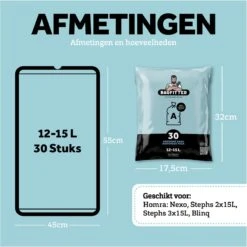 BagFitter Blauw A 12L Tot 15L Vuilniszak Met Trekband Van 100% Gerecycled Plastic – 54,5cm X 45cm – 30 Stuks – 12-15 Liter – Vuilniszakken – Afvalzakken – Prullenbakzakken Geschikt Voor O.a. Homra Stephs, Blinq En Nexo
