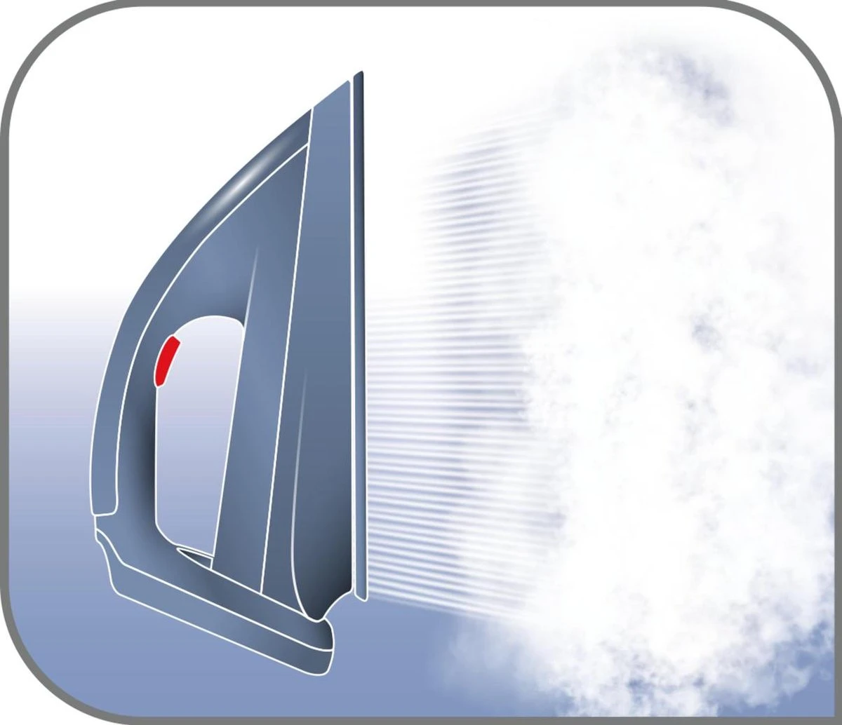 Krachtige stoom tot 5,2 bar voor snelle en goede strijkresultaten. Stoomstoot tot 180g/min voor het strijken van dikke stoffen of het verwijderen van hardnekkige kreuken.